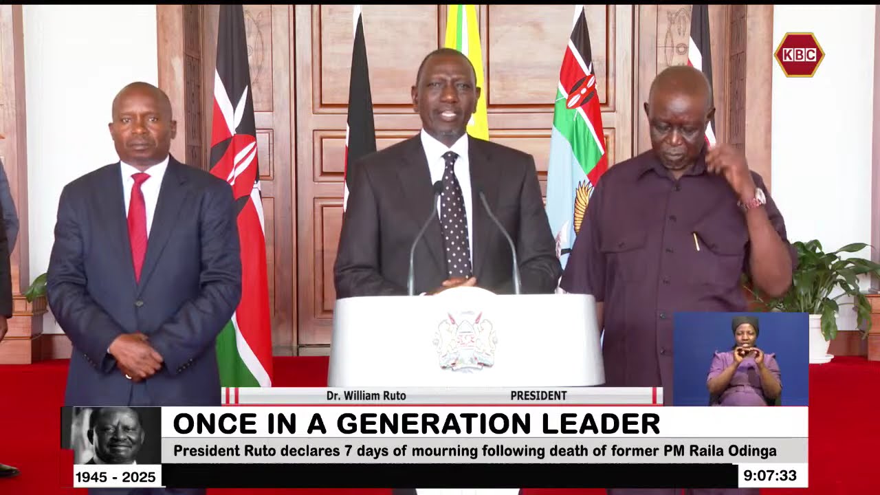 It is with deep sorrow that I inform the nation of the passing on of the Right Honourable Raila Amolo Odinga, our former Prime Minister, Kenya’s foremost statesman and one of Africa’s greatest sons.